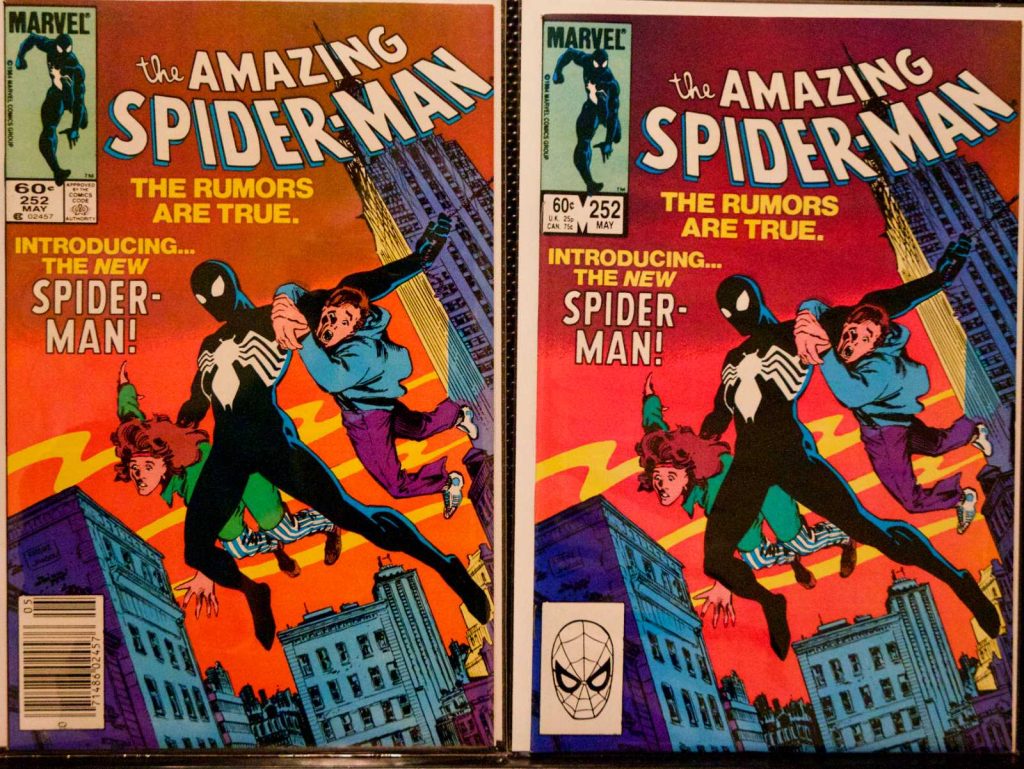 In the Amazing Spider-Man 252 photo, the issue on the right is a direct edition. In the UPC box on the issue on the left, note the two numbers 05. Those numbers signify that the edition is a newsstand copy.