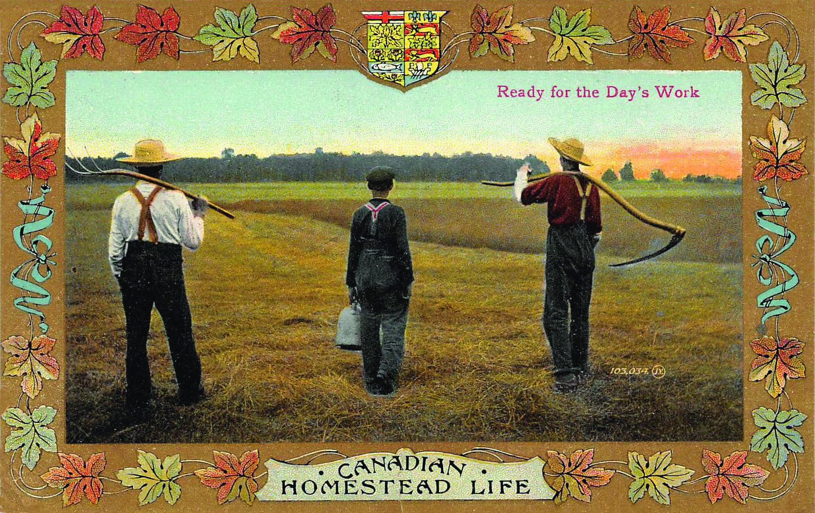Although artists played a huge role in the development of the picture postcard, the role of photographers was paramount. The main reason is that the vast majority of the picture postcards mailed and collected during the golden age were what collectors today call “regular view cards” or simply “views.” And for obvious reasons, photographs were the main source of these views. Unfortunately, although the artwork used to create picture postcards is often easily linked to a particular artist or illustrator, the same can’t be said for photographs. Of the millions of view cards in circulation in Canada during the golden age and beyond, only a tiny minority ever mention the photographer who actually provided the view. Take the work of renowned Goderich photographer Reuben Sallows for example. He sold his wonderful photos of Canadian farm life to numerous publishers in Canada, the USA and Britain, who turned them into thousands of different postcards (see Figure 3). And he’s not mentioned on any one of them!